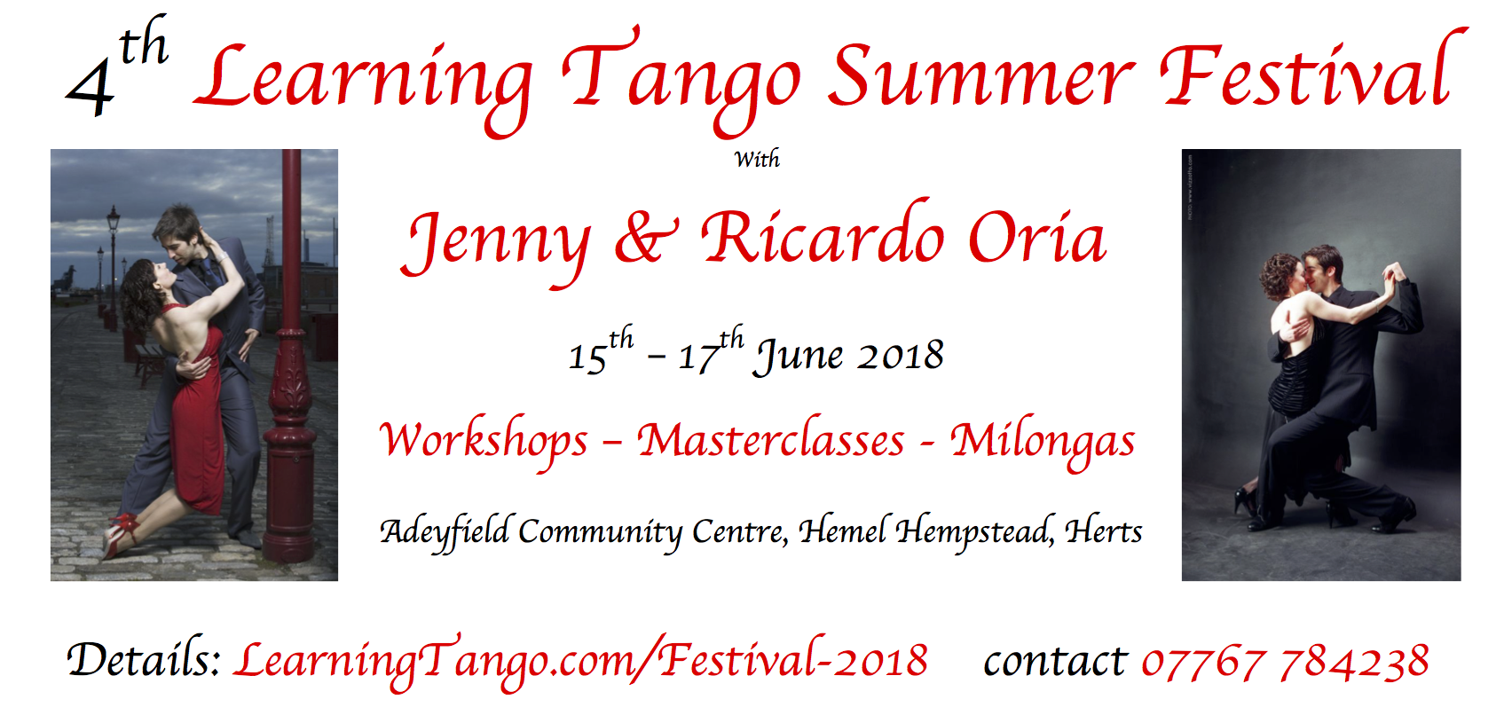 The festival includes lots of fabulous workshops, from Jenny and Ricardo, three milongas with four guest DJs, and the highlight of the festival: the Learning Tango Summer Ball!.